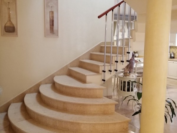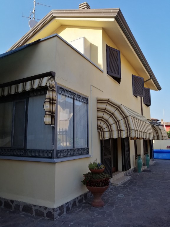 La villa si compone di grande sala con camino e cucina, tinello, bagno, camera matrimoniale con bagno al piano terra; due camere, entrambe con terrazzi/solarium e bagno al piano primo; sottotetto a uso camera e ripostiglio; condizionatore in ogni stanza. Corredata da giardino su 4 lati con due accessi carrabili.